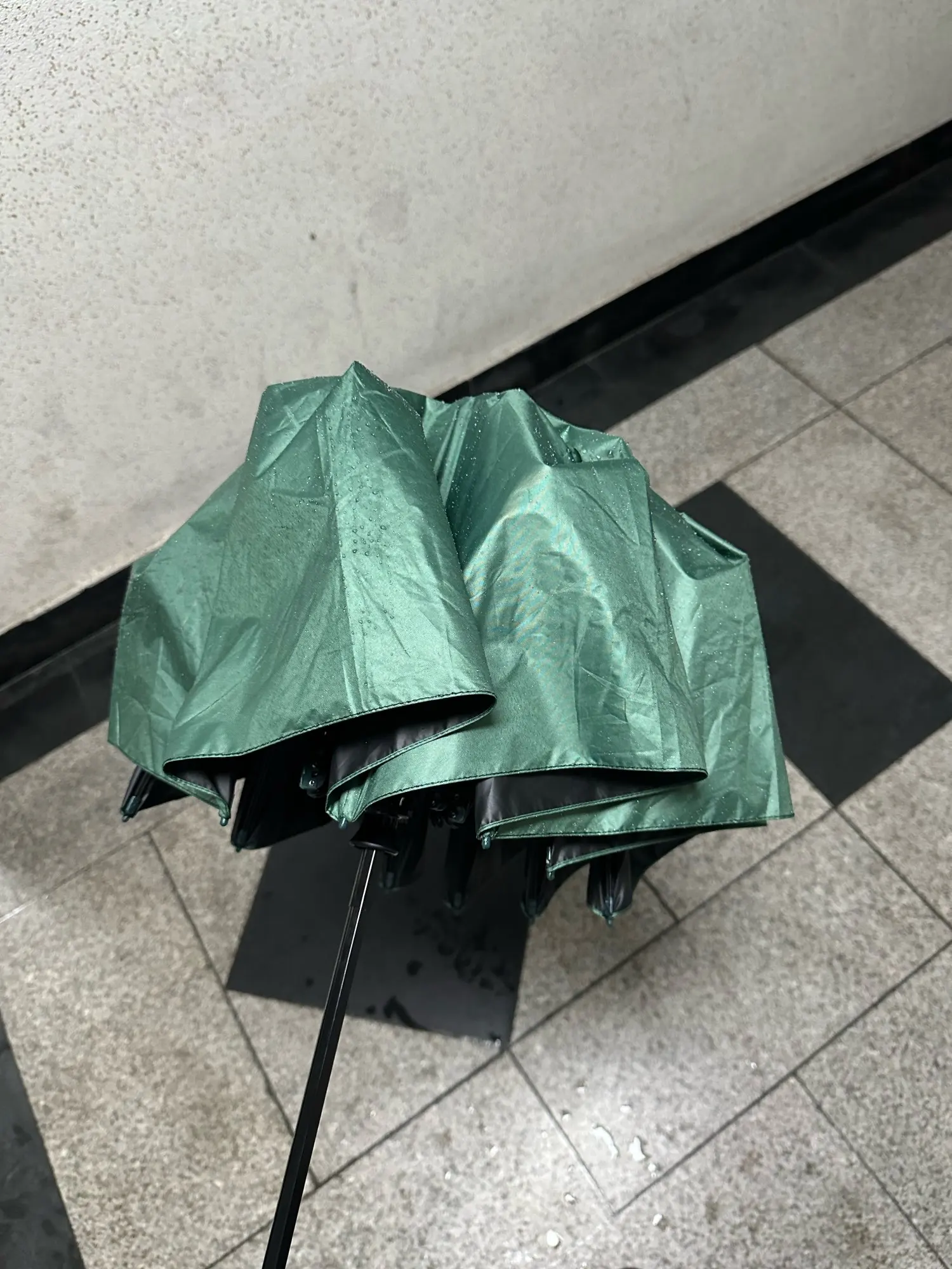 Damn heavy. If you shake it in an unfolded state, it wobbles quite a bit because the finish is sloppy. The umbrella doesn't fold neatly when folded. Waterproof raincoat fits well and does not drip even when worn indoors. It's an N-shaped umbrella with a width of 125cm. The downside is the price that breaks everything. It's a large automatic umbrella, but it's priced at around 8,000 won at T-Mart haha, GOAT.