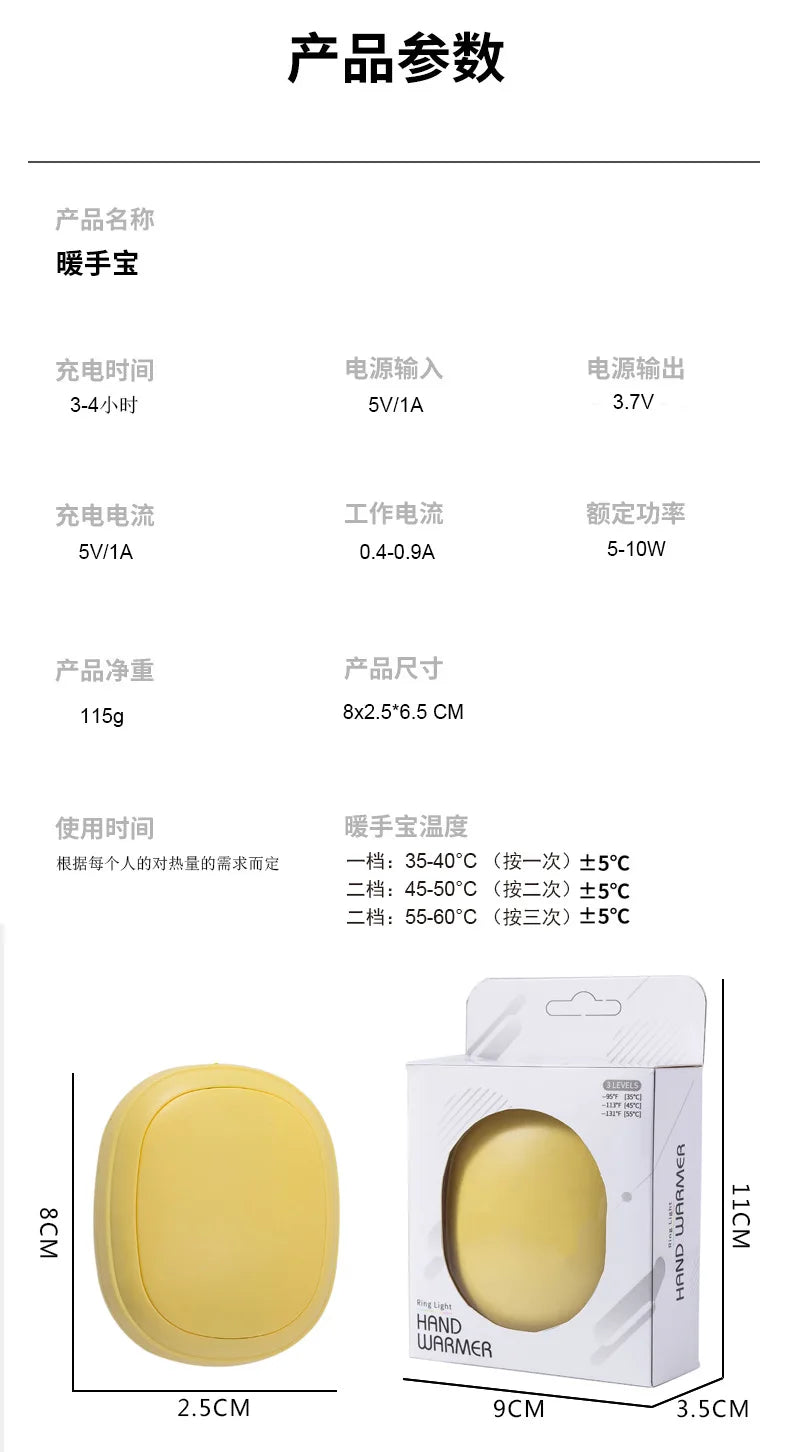 Perfect pocket-sized warmth! This compact USB rechargeable hand warmer features 3 adjustable temperature levels and double-sided heating for maximum comfort.
